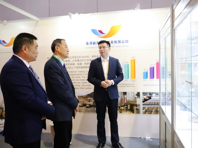 香港麗天公司在本屆進博會首次獨立參展,聚焦金屬礦產、農林糧油、能源化工等全省稀缺資源進口,展示了江蘇外貿公司近五年的發展歷程以及鉻礦、錳礦、鈦礦、菜籽油、天然橡膠、石油焦等主營業務產品,展現了江蘇外貿公司深度融入“一帶一路”建設成果以及服務全江蘇省現代化產業體系建設和構建自主可控供應鏈體系的能力。