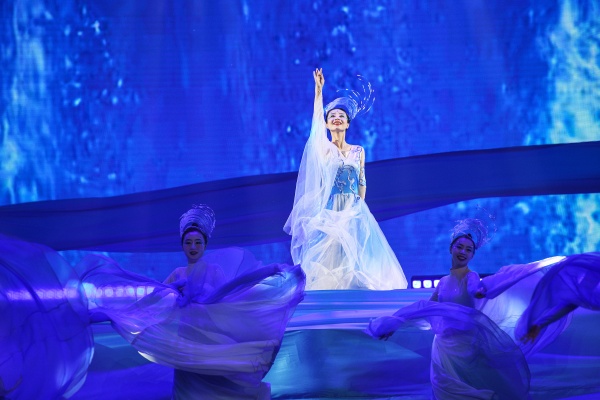 唯美演繹的舞蹈《入海》,通過(guò)舞者優(yōu)美的姿態(tài)和立體全景的視覺(jué)感觀,呈現(xiàn)出中華美學(xué)意蘊(yùn),詩(shī)意表達(dá)了集團(tuán)攜大江潮涌之勢(shì)入海奔流、逐浪前行,“建設(shè)世界一流企業(yè)”的遠(yuǎn)大夢(mèng)想。