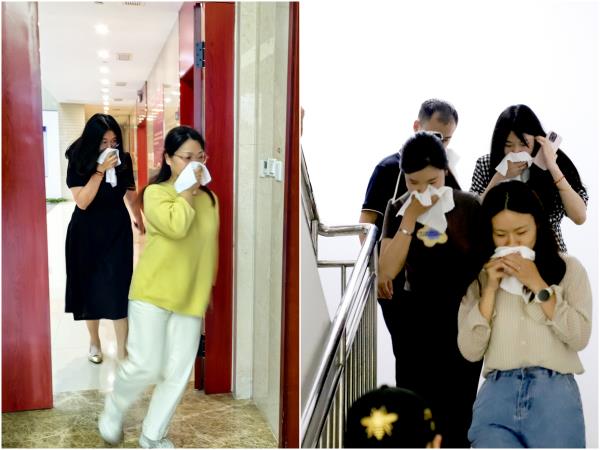 此次消防疏散演練活動以海企大廈突發(fā)火情為模擬場景,各單位人員在聽到火警鈴聲后迅速響應(yīng),手持逃生濕巾捂住口鼻,從消防樓梯有序撤離。